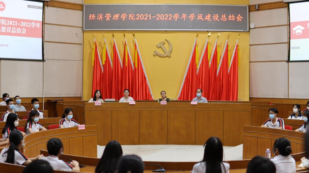為貫徹落實黨的教育方針,樹立我院優良學風典型、總結學院學風建設經驗、創造班風正、學風濃的良好學習環境,6月19日下午,經濟管理學院舉行了2021-2022學年學風建設總結會,會議主會場在十友樓二樓國際會議廳,分會場分設在北主樓9個教室。學院黨委書記謝輝玲、副書記王婷、副院長吳東武、各年級輔導員、部分班導師和全體非畢業生參與了會議。會議由輔導員許容榕主持。