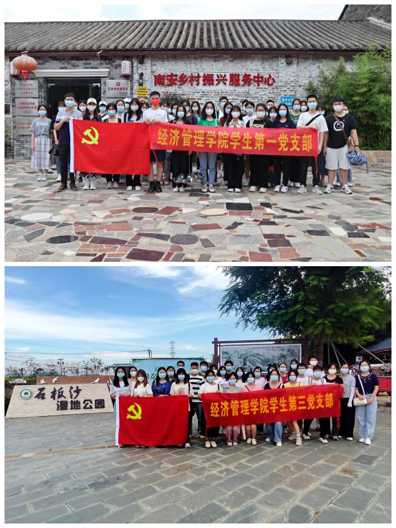 為進一步促進黨支部成員之間的密切交流,更好發揮黨員同志的傳幫帶作用,努力在學深、悟透、做實上下功夫,吸引更多青年學生投身鄉村振興,2022年6月25日,經濟管理學院學生第三黨支部聯合學生第一黨支部赴江門市新會區開展黨日活動,參觀學習江門市黨史教育基地南安村、石板沙村和桃蔭別墅,開展黨史學習教育,體驗鄉村振興成果。