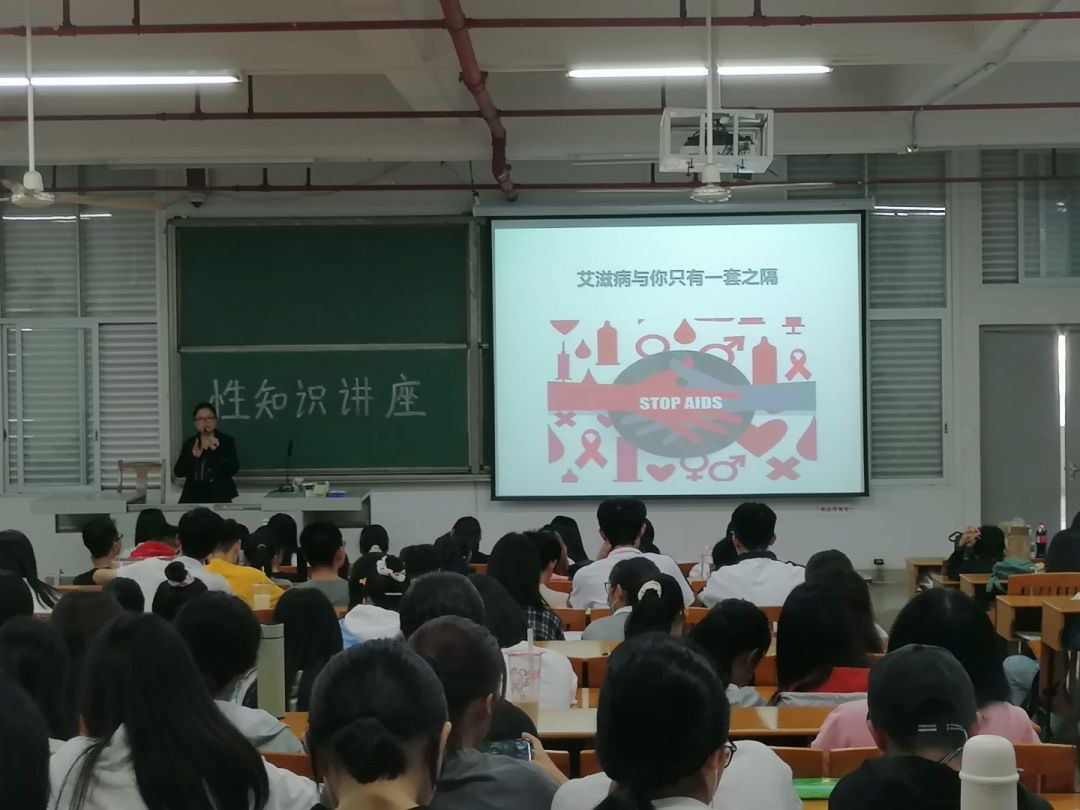 此次活動邀請了校醫(yī)務(wù)所的沈校醫(yī)主講,以“艾滋病與性”為主題,從近兩年廣東省艾滋病感染數(shù)據(jù)、性行為與艾滋病關(guān)系、艾滋病治療與預(yù)防等幾個個方面展開,通過理論講解、案例分析向同學(xué)們講解了性行為預(yù)防措施的重要性。講座結(jié)束后,沈校醫(yī)針對在場學(xué)生提出的疑惑耐心地一一解答,現(xiàn)場氛圍熱烈。