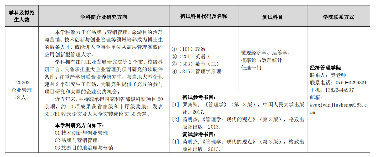 學院高度重視學科建設和專業發展工作,擁有“管理科學與工程”重點學科,“管理科學與工程”、“企業管理”2個碩士點,電子商務和市場營銷2個專業入選2020年度國家級一流本科專業建設點名單,旅游管理和會計學2個專業入選2021年度廣東省一流本科專業建設點名單。擁有廣東省工程技術中心“電子商務增強現實工程中心”和江門市政府智庫“江門經濟研究中心”,以及“粵港澳大灣區農業品牌研究院”、“海洋經濟與管理研究中心”等省、市、校級科研平臺。