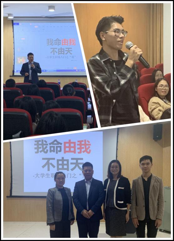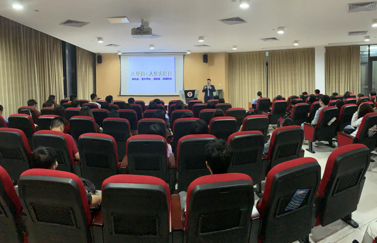 唐總以“我命由我不由天”為主題,首先結合自身求職季職業發展的經歷,分析了小公司和大平臺各自的優劣勢,鼓勵學生主動探索職業方向,樹立遠大的職業目標,抓住進大企業、大平臺學習工作的機會;隨后唐總介紹了知名企業選人用人標準,優秀職場新人應具備的特質:誠實正直、團隊合作、認同文化、綜合素質、務實吃苦、學習創新,并以管培生人才模型告訴在場同學進入職場前要好的準備,教育引導學生初入職場尤其要注意誠實守信、吃苦耐勞、認同融入企業文化、不要頻繁跳槽等。唐總的講座結合實際、語言詼諧,具有很強的思想性、知識性及指導性,博得了同學們的陣陣掌聲。講座從7:30持續到10點,在最后的互動環節,同學們積極主動地就目前就業遇到的困惑與唐總進行了深入交流,會場氣氛熱烈。