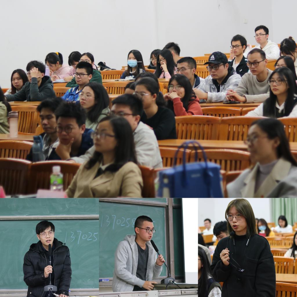 (研究生代表梁福寧和黃志勇分享考驗(yàn)經(jīng)驗(yàn);學(xué)生現(xiàn)場(chǎng)提問(wèn))