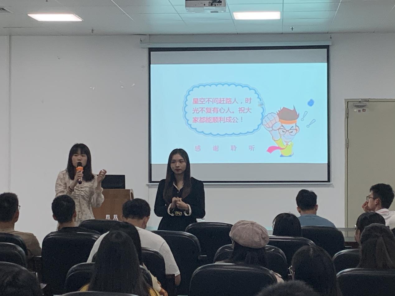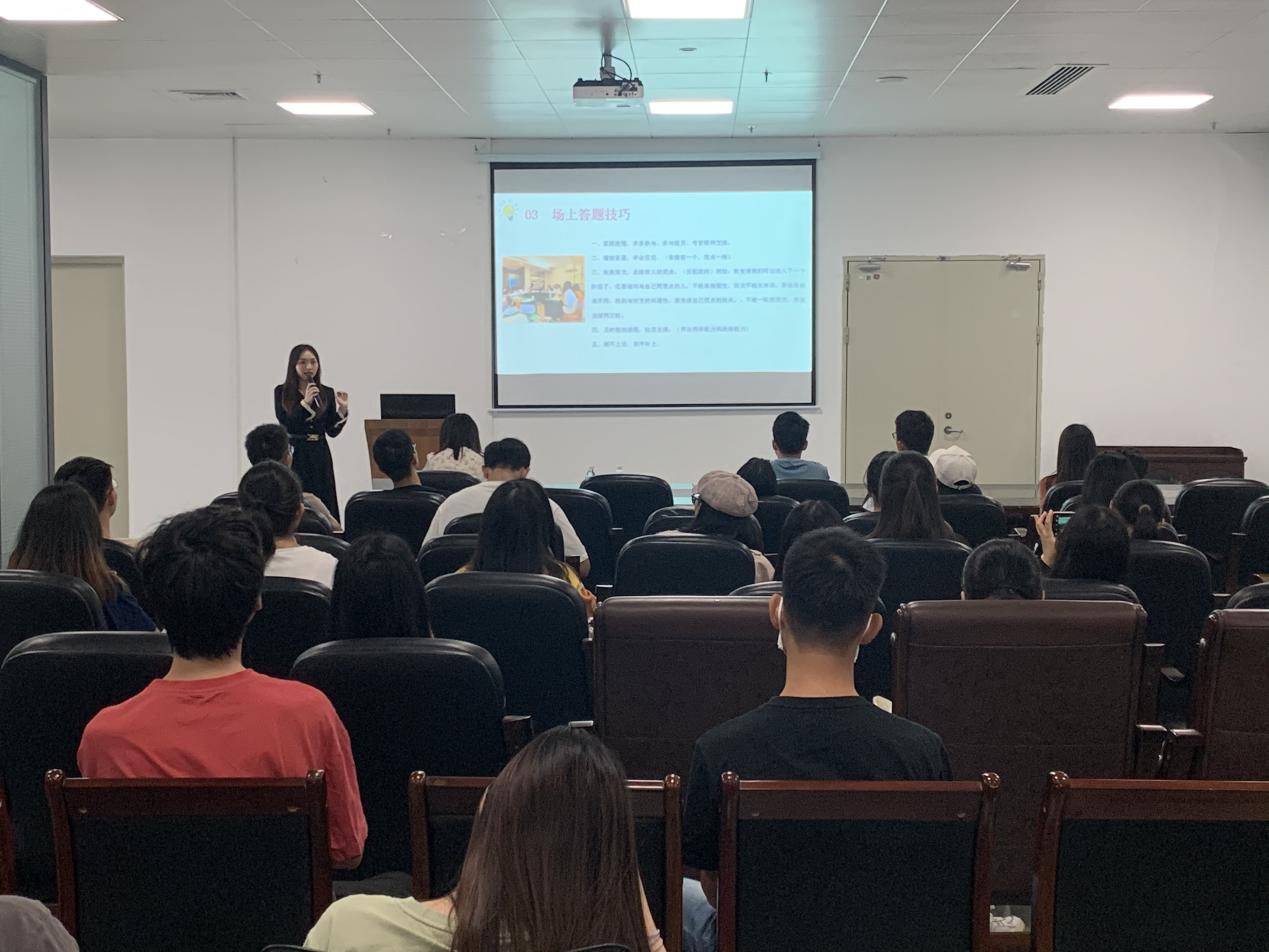 本次分享會邀請了現就職于中共恩平市委黨校的2020屆畢業生黃煒茵校友、恩平市良西鎮財政所的2020屆畢業生梁滋清校友作為主講。在交流分享會上,兩位校友從公務員面試流程、面試禮儀、答題技巧和注意事項進行了詳細的解析,著重為大家講解了面試各個環節的答題技巧、復習的要點,如何訓練自己用更加規范、系統的方法去闡述觀點,形成自己的答題思路與脈絡,強化答題能力與自信心,并結合自身經歷指導同學們科學制定學習計劃。在最后的互動環節,同學們就自己在公務員考試備考過程中遇到的困難和職業規劃等問題與兩位校友進行了交流,會場氣氛熱烈。