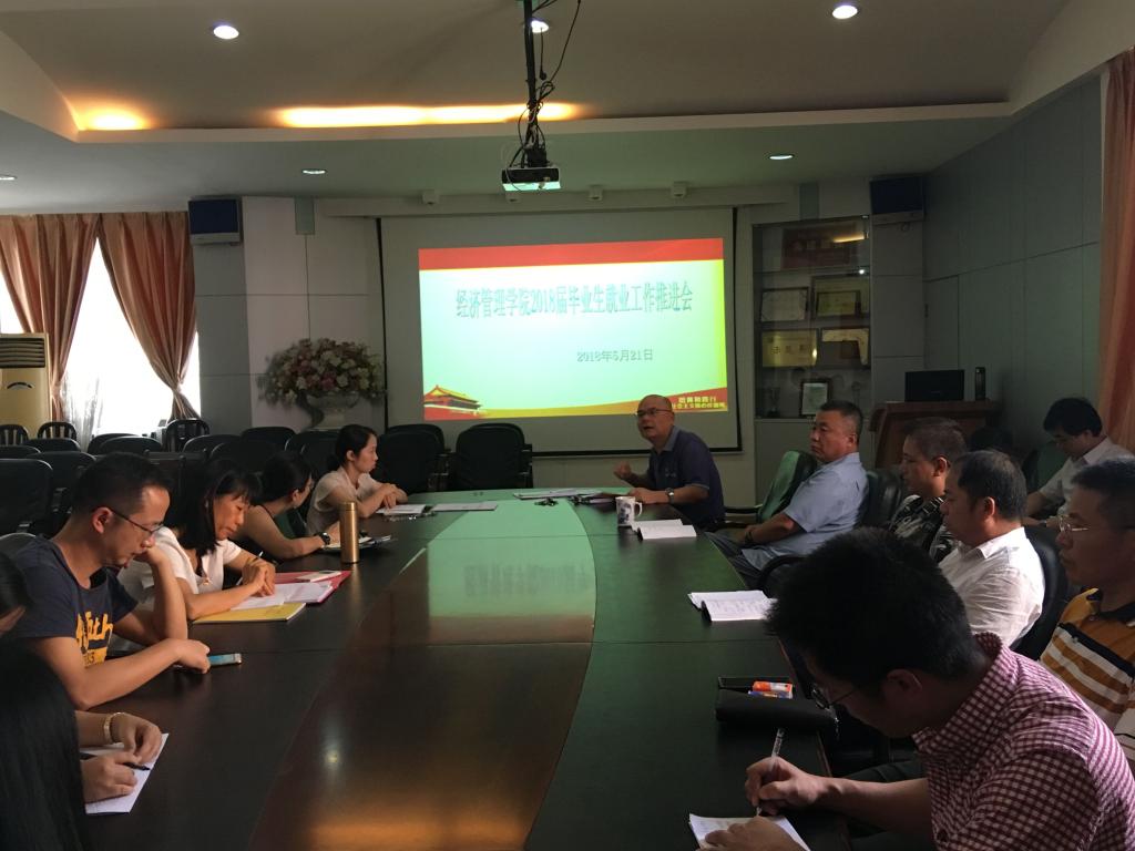 5月21日下午,經濟管理學院在馬蘭芳樓207會議室召開2018年畢業生就業工作推進會議。學院黨總支委員、各黨支部書記、全體畢業班班導師、輔導員出席會議。