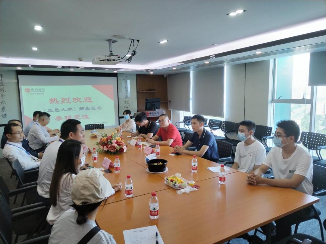 11月17日下午,學(xué)院邀請了中信證券來學(xué)院做招聘宣講和行業(yè)分享,線上線下共50名學(xué)生參加。中信證券華南股份有限公司人力資源總監(jiān)崔新琰介紹了公司的薪酬結(jié)構(gòu)、實(shí)習(xí)和人才培養(yǎng)體系,2020屆優(yōu)秀校友吳威龍分享了自身的求職經(jīng)驗(yàn)和工作心得,江門迎賓大道營業(yè)部業(yè)務(wù)總監(jiān)陳文生分享了證券行業(yè)的發(fā)展前景。11月18日下午,學(xué)院黨委副書記黃應(yīng)忠,輔導(dǎo)員陳健榮、譚鵬,及12名2023屆畢業(yè)生、大一新生走訪中信證券江門迎賓大道營業(yè)部,與負(fù)責(zé)人林偉科等人就職業(yè)發(fā)展、實(shí)習(xí)就業(yè)和人才輸送等方面進(jìn)行了交流,進(jìn)一步深化產(chǎn)學(xué)合作。現(xiàn)場5名2023屆畢業(yè)生參加了面試。