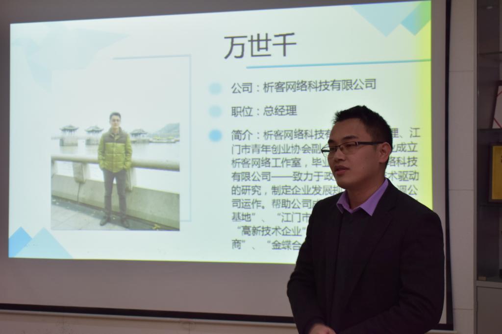 此次研討會旨在貫徹落實電子商務人才培養務實精神,對當前工作環境中的就創業職業需求進行探索,進一步加強校企之間的交流合作。五邑大學企業(行業)聯盟聯絡服務中心主任肖健華教授十分重視此次會議,并為本次研討會致詞。他指出本次會議目的,一個是與優秀校友進行見面會談,二是對專業人才培養方案改革進行意見交流。他回顧了近幾年學校的發展,隨著應用型高水平工科大學的建設以及省政府、江門政府的資金支持,五邑大學將迎來新的發展機遇。