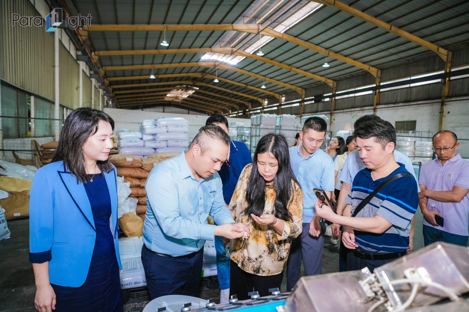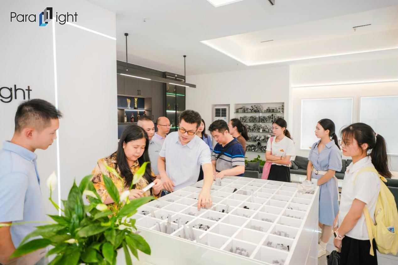 學院一行在2005屆國際經濟與貿易專業校友、平行光集團股東兼董事黃高余的熱情接待下,參觀了企業的生產基地、研發中心和產品展示廳。