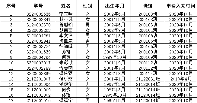 根據《共青團推優入黨工作實施辦法(試行)》《五邑大學共青團推優入黨工作實施細則(試行)》和《共青團五邑大學委員會推優入黨工作指引》的要求,經各團支部推薦、學院團總支審核,擬推薦李芷晴等17名同志作為黨的發展對象人選,現將擬推薦名單予以公示(見附件),公示期為2022年9月27日至10月9日。公示期間,如對有異議,可向經濟管理學院團總支提出情況反映。