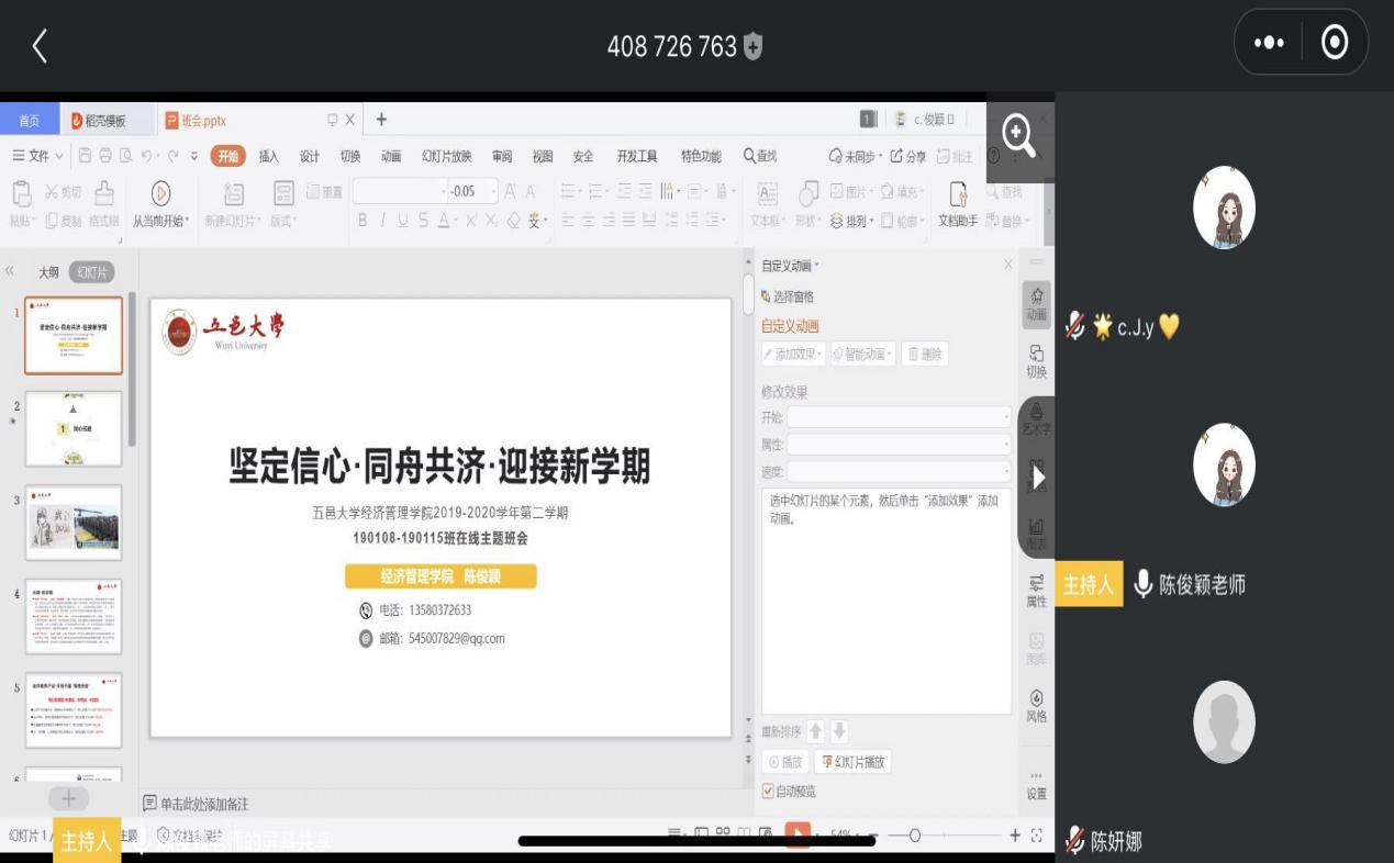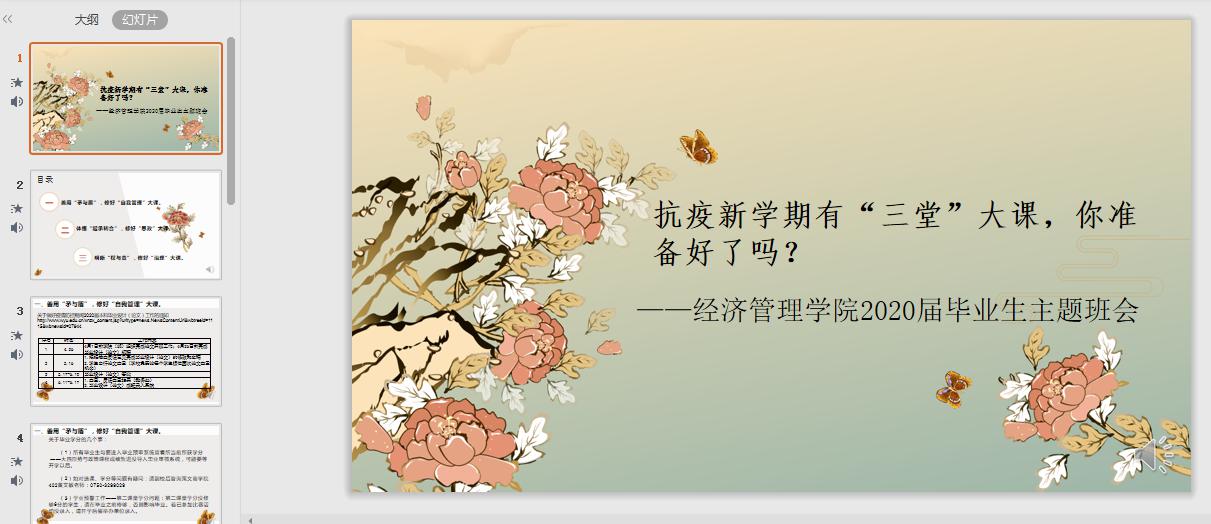 為深入學習貫徹習近平總書記關于疫情防控的重要指示精神,更好的配合學校疫情管控工作和線上課程學習的正式推進。經濟管理學院全體輔導員于3月11日—14日通過騰訊會議、錄制小視頻、QQ群課堂、微信語音播報等多種形式與學生們線上相約召開了一次特殊的主題班會,進一步的了解真實全面的學生動態,從而給學生近距離的關心關懷。