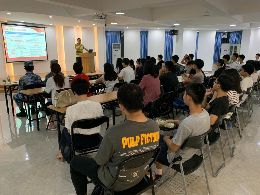 5月21日下午,經(jīng)濟管理學院在江門樓二樓易班體驗廳,舉辦2019年優(yōu)秀退伍學生交流分享會。經(jīng)濟管理學院黨總支副書記謝輝玲、吳小霞,學校安保處劉興武科長,輔導員陳健榮老師,優(yōu)秀退伍學生徐權(quán)輝和何裕倫,以及60多名學生參加了分享會。
