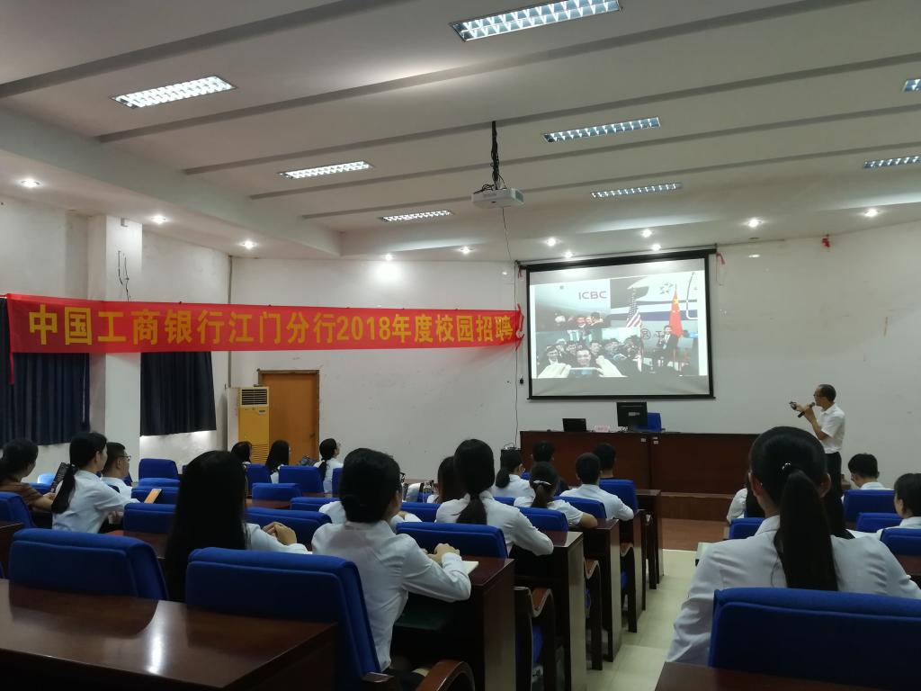 2017年9月29日下午,五邑大學(xué)經(jīng)濟管理學(xué)院攜同中國工商銀行江門分行、中國光大銀行江門分行在馬蘭芳辦公樓301舉辦校園招聘宣講會。兩家銀行的招聘負責(zé)人分別介紹了各自企業(yè)的特點以及優(yōu)勢,針對應(yīng)屆畢業(yè)生們較為關(guān)注的問題(福利待遇、晉升途徑等)進行一一解答,并從企業(yè)HR的角度給畢業(yè)生們做就業(yè)指導(dǎo)。會后,銀行招聘人員收取了畢業(yè)生的簡歷。