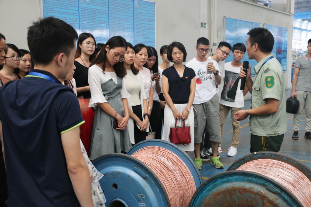2017年9月28日下午,經(jīng)濟(jì)管理學(xué)院黨總支吳小霞副書(shū)記、輔導(dǎo)員王姍老師帶領(lǐng)近30名應(yīng)屆畢業(yè)生前往廣東珠江電線電纜有限公司(佛山南海)參觀交流。企業(yè)的技術(shù)主管、人事主管分別為師生們介紹車間自動(dòng)化生產(chǎn)線、公司簡(jiǎn)介及發(fā)展歷程、人才招聘及培養(yǎng)模式等,讓學(xué)生們近距離觀察、感受企業(yè)文化,與此同時(shí),企業(yè)邀請(qǐng)了4位在職員工(我校2017屆畢業(yè)生)做經(jīng)驗(yàn)分享,講述他們的“職場(chǎng)初體驗(yàn)”。隨后,畢業(yè)生們也就其關(guān)注的相關(guān)問(wèn)題依次向企業(yè)主管、師兄師姐們進(jìn)行了提問(wèn),整個(gè)行程緊湊、充實(shí)。最后,吳小霞副書(shū)記向企業(yè)表示衷心的感謝,感謝為我院畢業(yè)生提供一次參觀學(xué)習(xí)的機(jī)會(huì),并鼓勵(lì)畢業(yè)生們要多看、多思、多問(wèn)、多學(xué),腳踏實(shí)地,把握機(jī)會(huì),盡早走入職場(chǎng)鍛煉自己。