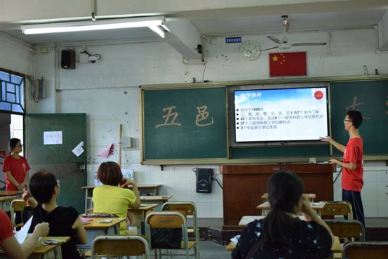 恰逢鶴山一中高三學(xué)生家長會,家長與畢業(yè)生紛紛回校了解畢業(yè)和填報志愿事項,我院宣傳服務(wù)小隊通過攤位展示和宣講會形式,如驕陽般熱情向?qū)W生和家長解答報考我校及資助政策相關(guān)問題,吸引眾多學(xué)生及家長的咨詢。為有效地吸引考生與家長,我院學(xué)生制作了學(xué)校概況PPT及學(xué)院招生宣傳片,邀請鶴山一中優(yōu)秀畢業(yè)生進行現(xiàn)場講解及學(xué)習(xí)經(jīng)驗交流。