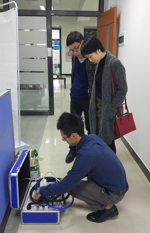 林康哲向?qū)W院老師展示馬里奧清潔工具