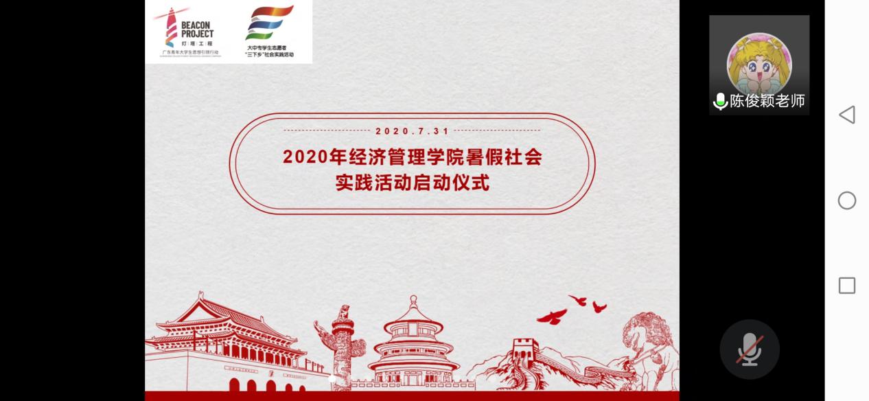 為引領廣大青年學生深入學習貫徹習近平新時代中國特色社會主義思想,特別是習近平總書記關于青年工作的重要思想,積極發揮實踐育人在加強和改進大學生思想政治教育中的重要作用,結合疫情防控常態化工作要求和中央宣傳部、中央文明辦、教育部、共青團中央、全國學聯聯合下發的《關于在疫情防控常態化形勢下做好2020年全國大中專學生志愿者暑期文化科技衛生“三下鄉”社會實踐工作的通知》,7月31日,經濟管理學院通過“騰訊會議”軟件平臺舉行2020年暑期社會實踐云啟動儀式暨線上培訓會。經濟管理學院團總支書記陳俊穎、院青年志愿者協會全體成員和全體實踐隊伍的成員參與本次會議。