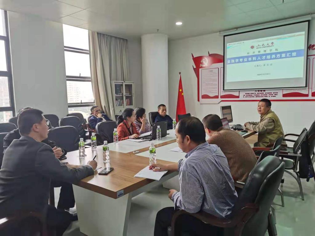 2020年12月10日下午,經(jīng)濟(jì)管理學(xué)院金融學(xué)專業(yè)召開專業(yè)質(zhì)量提升工作全體會(huì)議。會(huì)上,五邑大學(xué)校長助理、經(jīng)濟(jì)管理學(xué)院院長王鵬教授對蔣海教授蒞臨指導(dǎo)表示歡迎,對金融學(xué)專業(yè)的專業(yè)質(zhì)量提升工作寄予了希望。金融學(xué)專業(yè)負(fù)責(zé)人匯報(bào)了近年來在新版人才培養(yǎng)方案和課程大綱的制定上所積累的經(jīng)驗(yàn)和取得的成果;提出了新版方案應(yīng)用于2020級金融學(xué)專業(yè)人才培養(yǎng)實(shí)踐中所面臨的一些問題和改進(jìn)的思路。金融學(xué)專業(yè)顧問、暨南大學(xué)博士生導(dǎo)師蔣海顧問在與金融學(xué)專業(yè)教師的熱烈互動(dòng)中,提出了一些關(guān)鍵性、戰(zhàn)略性的指導(dǎo)意見。包括:1、人才培養(yǎng)目標(biāo)是培養(yǎng)方案的核心要素,應(yīng)突出反映自己的特色和時(shí)代的需要,例如在金融科技、普惠金融等方面的要求;特別還要注重和強(qiáng)調(diào)有機(jī)融入思政教育元素;2、人才培養(yǎng)方案必須嚴(yán)格按照國家質(zhì)量標(biāo)準(zhǔn)執(zhí)行,否則后面在高校教學(xué)質(zhì)量評估、一流專業(yè)建設(shè)的申報(bào)等方面會(huì)遇到較大麻煩和困難(蔣教授特別表揚(yáng)了金融學(xué)專業(yè)克服重重困難,按照國家質(zhì)量標(biāo)準(zhǔn)要求首次開出了《政治經(jīng)濟(jì)學(xué)》新課);3、課程體系設(shè)置要注意課程先修后續(xù)之間的邏輯關(guān)系,例如當(dāng)前方案中,將計(jì)量經(jīng)濟(jì)學(xué)與金融工程學(xué)在同一個(gè)學(xué)期開是不合理的,因?yàn)橛?jì)量經(jīng)濟(jì)學(xué)是金融工程學(xué)的先修課程,應(yīng)該先于金融工程學(xué)而開設(shè)。4、根據(jù)金融行業(yè)和專業(yè)發(fā)展的時(shí)代需求和發(fā)展趨勢,建議將原方案里的《互聯(lián)網(wǎng)金融》課程改名為《金融科技》課程;5、如果能提供更多的選修課,則可以將其分模塊設(shè)置(如公司金融模塊等);6、畢業(yè)論文的16個(gè)學(xué)分可以借鑒暨南大學(xué)分為畢業(yè)論文8個(gè)學(xué)分和畢業(yè)實(shí)習(xí)4個(gè)學(xué)分的組合;7、暨南大學(xué)金融創(chuàng)新班選取優(yōu)秀的金融專業(yè)學(xué)生進(jìn)行精英培養(yǎng),專門導(dǎo)師指導(dǎo),去知名高校讀研的比例很高,也是可以借鑒的經(jīng)驗(yàn)。
