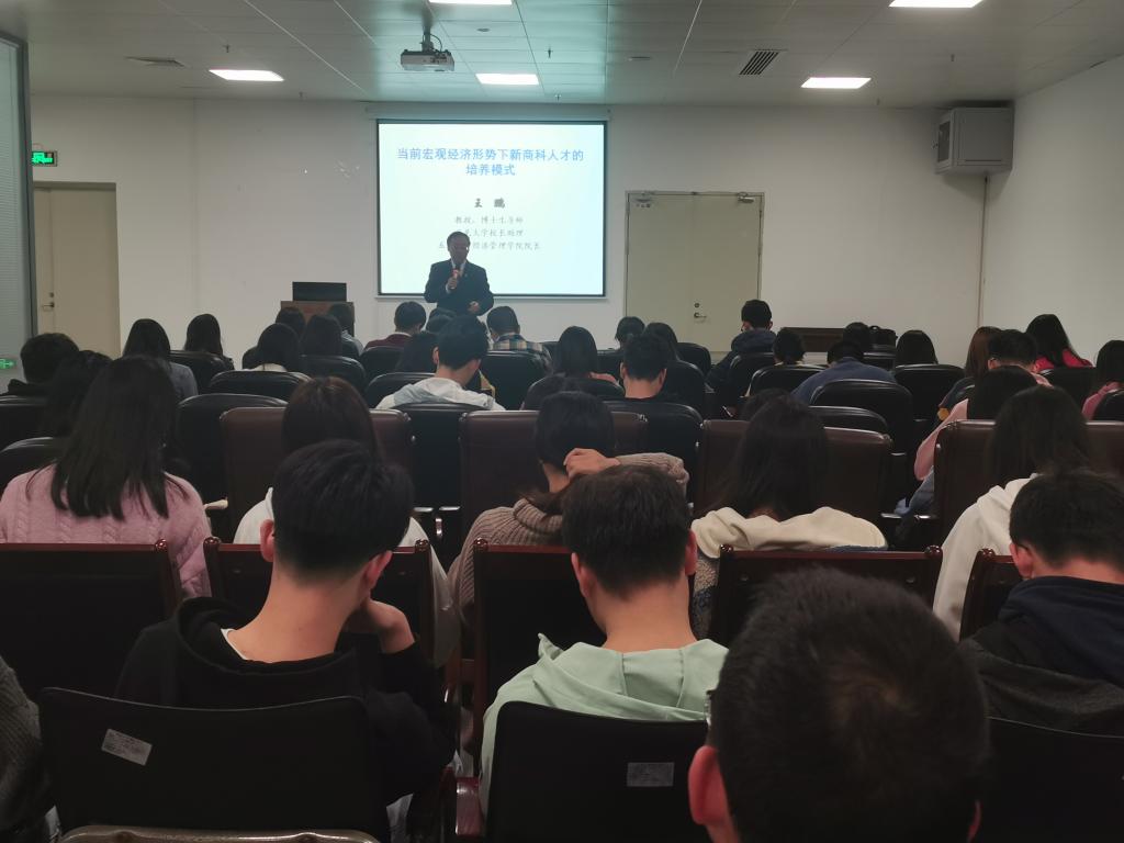 2021年3月23日下午,校長助理、經(jīng)濟管理學院院長王鵬教授在策文商學院大樓507講授本學期第一堂思政課,授課主題為“當前宏觀經(jīng)濟形勢下新商科人才的培養(yǎng)模式”。經(jīng)濟管理學院全體研究生及本科生代表近百人參加了本次學習。