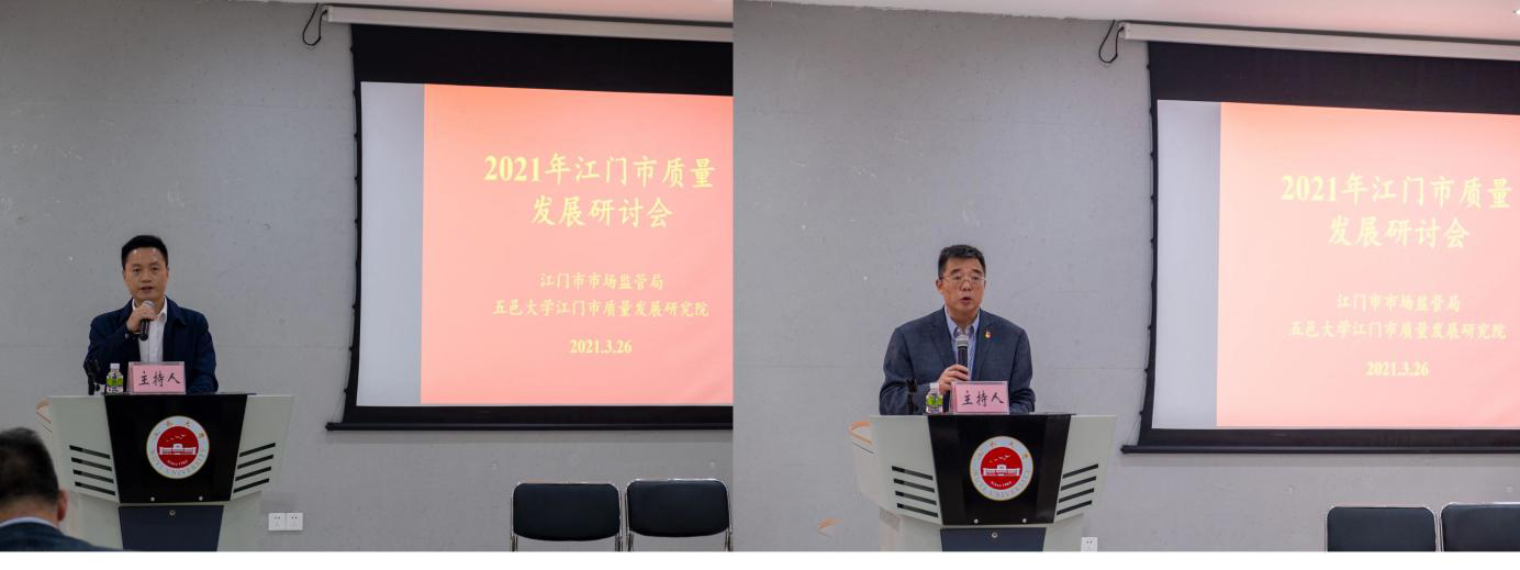 3月26日下午,我校江門市質量發展研究院與江門市市場監管局聯合在學校學生綜合服務中心209舉辦了“2021年江門市質量發展研討會”,學校黨委副書記李靄康、市市場監管局副局長張斌、經濟管理學院黨政領導班子出席了會議,會議由校長助理、經濟管理學院院長王鵬和副院長姜文仙主持。