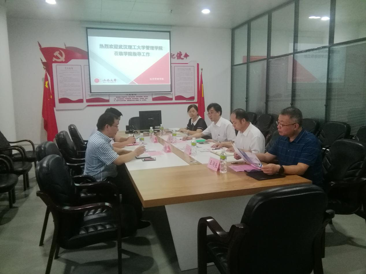 王東武副院長對學院的熱情接待表示感謝,他介紹了武漢理工大學的基本情況及管理學院的歷史發展,指出了學院的發展特色與取得的成績,表示學院之間應該多交流聯系,探討經驗,促進發展。謝寶國副主任詳細了解了我院電子商務和市場營銷兩個國家一流本科專業建設點的情況,雙方就一流專業建設點的建設情況進行了較為深入的探討。