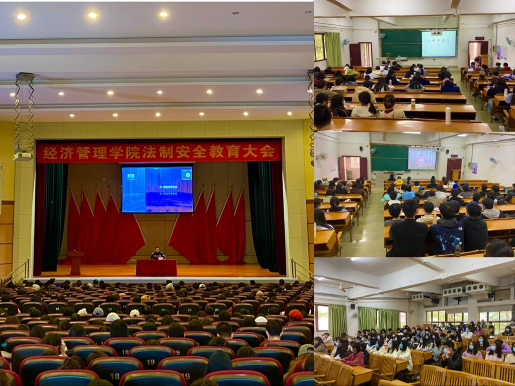 為貫徹落實總體國家安全觀,深入開展安全宣傳教育,進一步增強學生法制觀念,培養學生法制思維,有效提高學生對各類詐騙方式的自我防范意識和鑒別能力,11月23日,經濟管理學院特邀江門反詐中心負責人、江門市公安局刑偵支隊徐軼群隊長面向全院學生開展法制安全教育講座,會議由黨委副書記王婷主持,學院黨委書記謝輝玲、全體輔導員及全院在校生參加了會議,會議采用云視頻直播方式,主場地設在呂志和禮堂,馬蘭芳教學樓301-304采取同步直播。