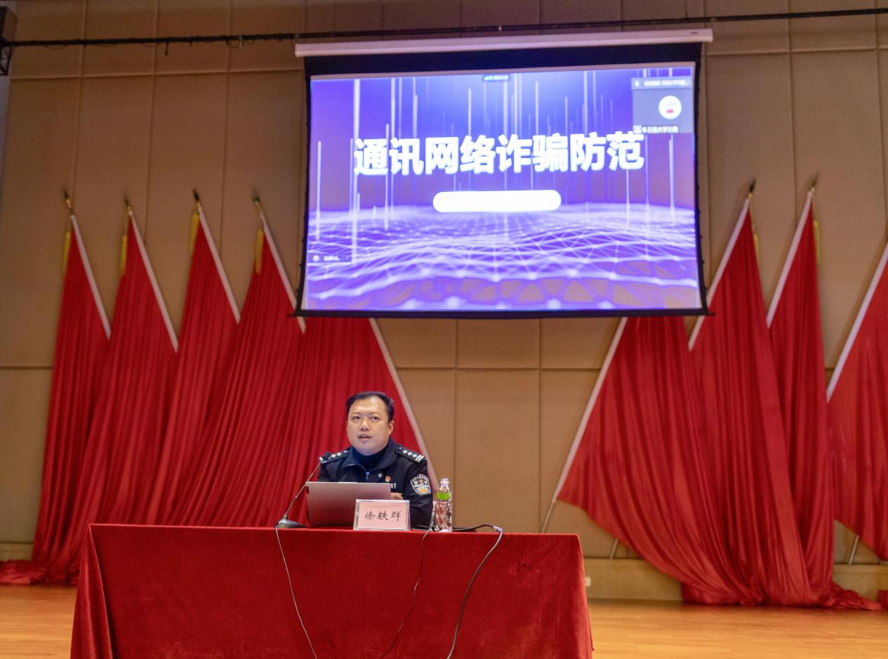 “每一類電信網絡詐騙,輕則會對個人和家庭造成不同程度的財產損失,重則將會釀成不可挽回的悲劇。”徐警官提醒學生,防范電信網絡詐騙的關鍵在于保護好個人重要信息,如身份證號、銀行賬戶、各類密碼和驗證碼,不給騙子可乘之機。當遭遇類似詐騙行為時,一定要保持清醒的頭腦,提高警惕并不貪圖小利,做到“不輕信、不透露、不轉賬”,第一時間報警尋求幫助,一起筑牢反詐防護墻。學院黨委書記謝輝玲向同學們提出兩點要求:一是增強安全意識,切實維護好國家安全,社會安全和校園安全,保護好個人人身財產安全,并學會用法律手段保護自己。二是要增強紅線意識,樹立底線思維,做遵紀守法大學生,不要逾越規矩,更不能以身試法。