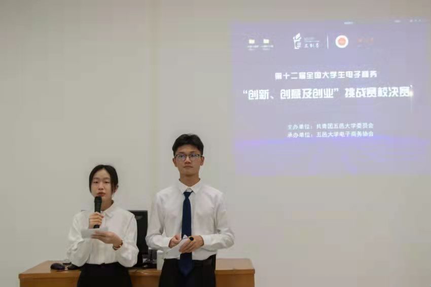 2022年4月9日,由共青團五邑大學委員會主辦、經濟管理學院承辦的第十二屆全國大學生電子商務“創新、創意及創業”挑戰賽校賽決賽在策文商學院203順利舉行。本次比賽共有152支團隊參賽,經過前期專家初評確定了25支團隊參加決賽答辯。