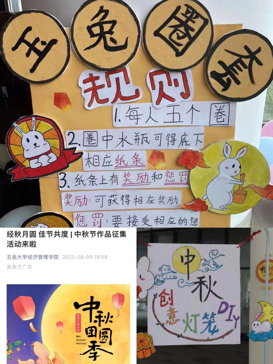 在嚴(yán)格遵守疫情防控要求,控制人員流動(dòng)的前提下,學(xué)院通過線上線下相結(jié)合,線上開展“經(jīng)秋月圓,佳節(jié)共度”中秋作品征集活動(dòng);線下組織開展以“明月寄相思,千里話團(tuán)圓”為主題的中秋游園會(huì)。“月亮打卡計(jì)劃”、“月圓燈謎”、“詩(shī)與中秋”、“手作伴禮”等活動(dòng),不僅營(yíng)造了濃濃的節(jié)日氛圍,也讓同學(xué)們感受到了家一般的溫暖。