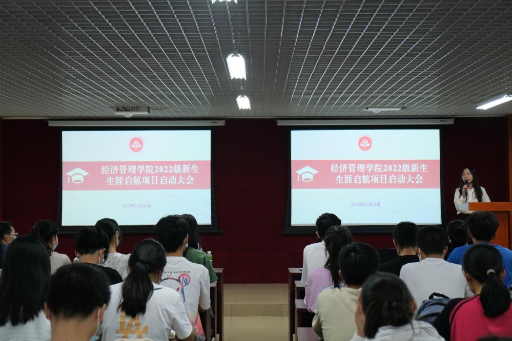 11月11日,經濟管理學院在北主樓1510會議室舉行2022級“新生生涯啟航項目”啟動大會。學院黨委副書記黃應忠、新生班導師趙良輝、劉欣茹、羅俊,輔導員許容榕、陳健榮、艾贛鋒,以及新生學長代表和各新生班級學生代表參與了會議,其余新生線上參會。會議由輔導員許容榕主持。