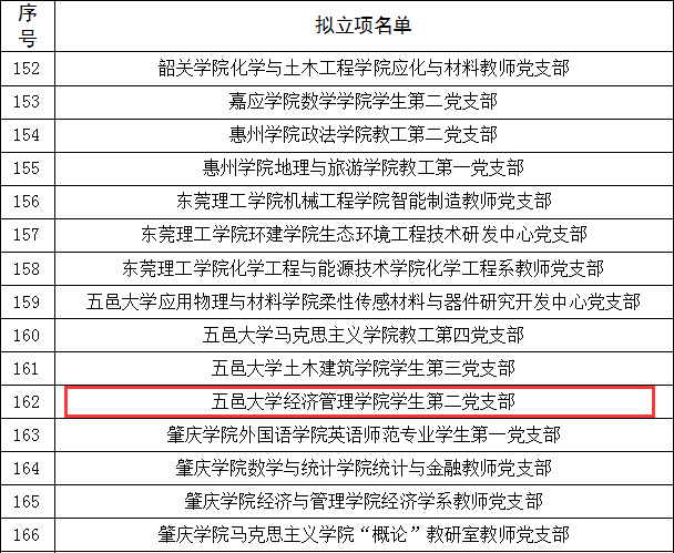 近日,中共廣東省委教育工委公布了第四批全省黨建工樣板支部培育創(chuàng)建單位名單,五邑大學(xué)經(jīng)濟(jì)管理學(xué)院學(xué)生第二黨支部入選第四批全省“黨建工作樣板支部”培育創(chuàng)建單位。此次評(píng)審結(jié)果經(jīng)各高校申請(qǐng)、資格審查、專家評(píng)審、省委教育工委會(huì)議審議遴選產(chǎn)生。