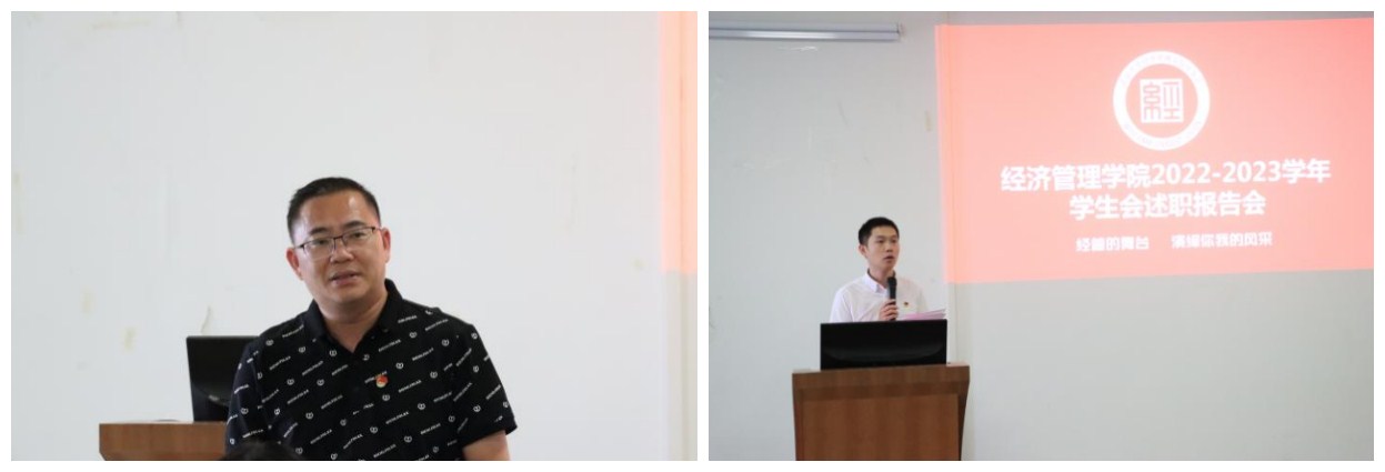 為落實(shí)共青團(tuán)中央、教育部、全國(guó)學(xué)聯(lián)《關(guān)于推動(dòng)高校學(xué)生會(huì)(研究生會(huì))深化改革的若干意見》文件精神,聚焦深化學(xué)生會(huì)改革,持續(xù)砥礪奮進(jìn),7月5日,經(jīng)濟(jì)管理學(xué)院2022-2023學(xué)年學(xué)生會(huì)述職報(bào)告會(huì)在策文商學(xué)院大樓507舉行。學(xué)院黨委副書記黃應(yīng)忠、輔導(dǎo)員代表、學(xué)生干部代表、學(xué)生代表參加會(huì)議,會(huì)議由輔導(dǎo)員譚鵬主持。
