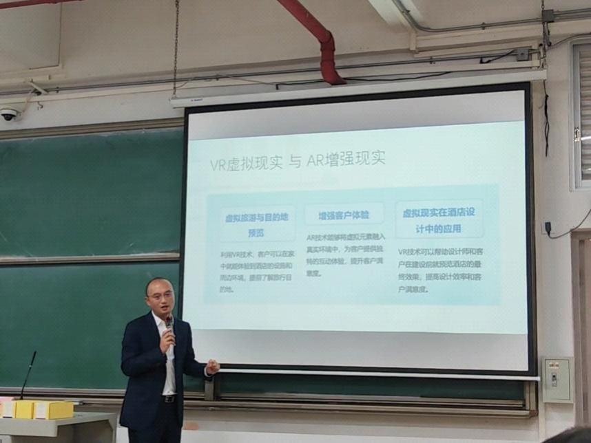 然后,嚴竹明博士以“酒店與旅游業創新”為題,結合瑞頤酒店管理有限公司的實踐案例,分享了酒店業創新的最新趨勢與經驗。他指出,在科技創新大潮下,酒店業需要不斷創新服務模式、提升服務質量、重塑客戶體驗。嚴博士通過多角度分析,深入探討了科技創新對酒店業的影響,以及酒店科技應用面臨的挑戰和機遇。