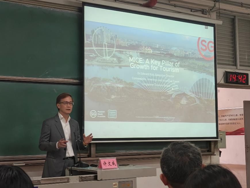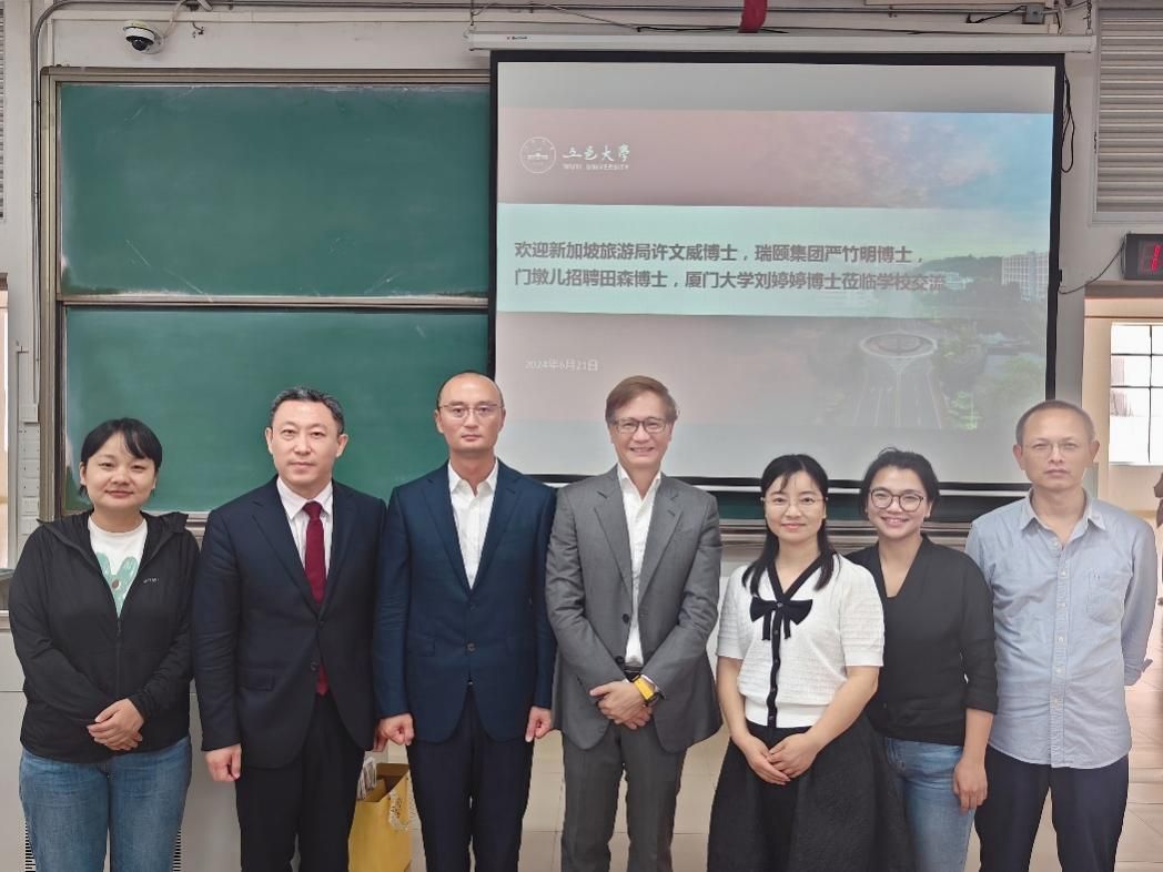 6月21日,新加坡旅游局會議與獎勵旅游執行署長許文威博士、瑞頤集團董事長兼首席執行官嚴竹明博士、門墩兒招聘創始人兼首席執行官田森博士及廈門大學管理學院助理教授劉婷婷博士蒞臨經濟管理學院交流,并作了題為“旅游目的地營銷策略與創新”“酒店與旅游業創新創業”的專題講座。經濟管理學院院長彭敏晶教授出席活動。講座由旅游管理專業負責人熊莎莎副教授主持,吸引了約100名師生參加。