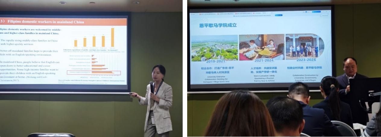在為期三天的會議中,旅游管理專業師生代表就跨國勞工研究、鄉村旅游和城市旅游體驗等熱點話題進行了精彩的學術報告。陳慧博士的論文《Escaping constraints: The role of pub-going of undocumented Filipino domestic workers in Mainland China》深入探討了在華菲律賓家政從業者的休閑行為及其背后的社會和心理需求,為相關政策制定提供了新的思路;伍鋒博士以《鄉村景區運營官:廣東恩平歇馬學院旅游專業人才培育之舉措》為題,詳細介紹了歇馬學院在培養鄉村景區運營人才方面的創新實踐,包括特色課程體系構建、政校企合作模式等,并分享了這些舉措在推動恩平歇馬舉人村旅游區發展方面的顯著成效。老師們的分享得到了世界各地專家的充分肯定。