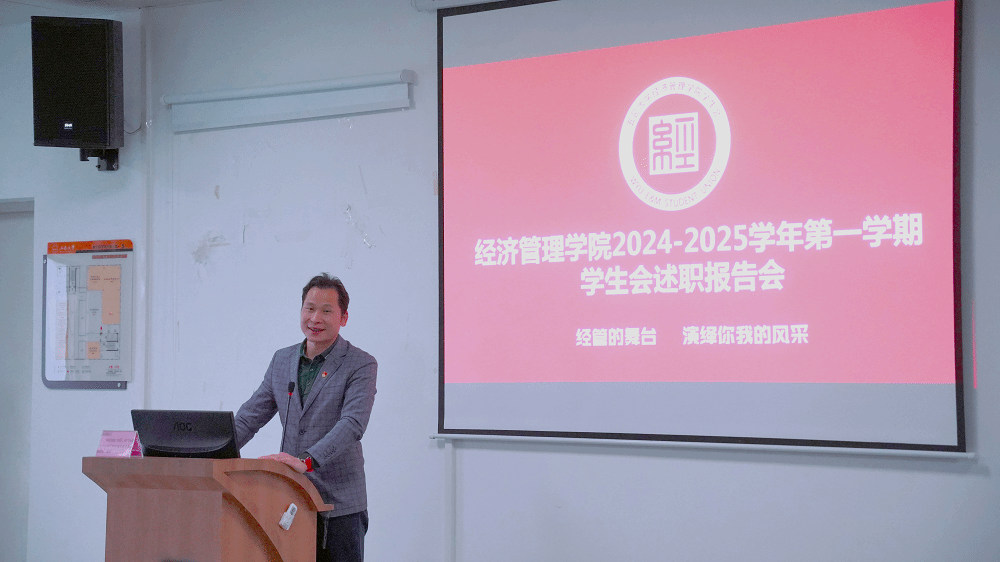 為落實共青團中央、教育部、全國學聯《關于推動高校學生會(研究生會)深化改革的若干意見》的相關要求,根據《五邑大學經濟管理學院學生會組織述職評議辦法》,2025年2月28日,經濟管理學院在策文商學院大樓507室舉行2024-2025學年第一學期學生會主席團和部門負責人述職報告會。學院黨委副書記李奎華、學生干部代表、學生代表參加會議,會議由學生會指導老師譚鵬主持。