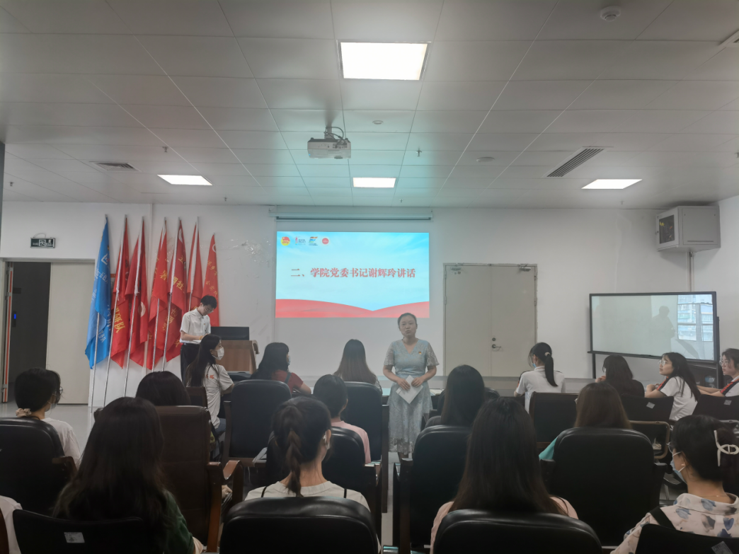 隨后,學院黨委書記謝輝玲為校級重點團隊代表授旗并講話。她充分肯定近年來我院開展社會實踐工作所取得的成績,指出暑期“三下鄉”是我校“四位一體”思想政治教育體系的重要內容,所有實踐隊伍要珍惜此次機會,充分依托各自專業背景,在社會大課堂中受教育增知識長才干。她向參與實踐的團隊提出了三點要求:一是要提高安全意識,要嚴守組織紀律,服從組織和當地政策的安排,筑牢安全底線,杜絕私自行動;二是要明確實踐目標,找準定位,提前籌備謀劃,在鄉村、基層的實踐中大顯身手、實現價值;三是要增強團隊意識,發揚“奉獻、友愛、互助、進步”的志愿者精神,讓青春在奮斗中閃光。謝輝玲還重點強調了廣東當前疫情多點散發的嚴峻形勢,提醒同學們外出時務必做好防疫工作,并時刻關注所在地疫情發展動態。