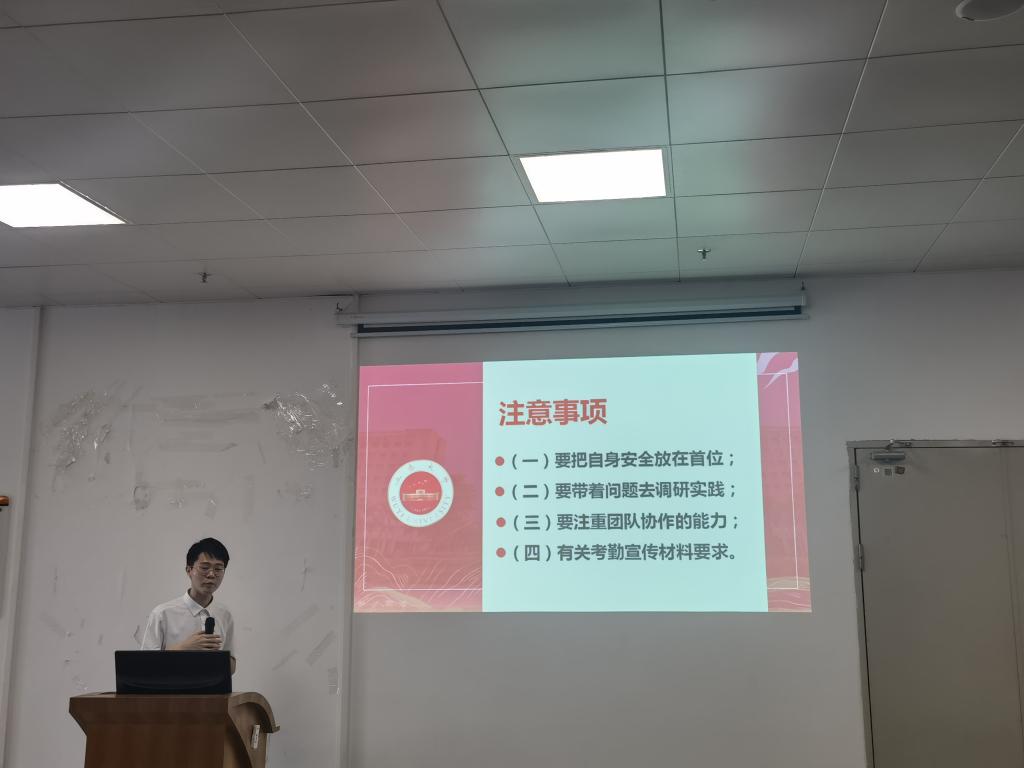 最后,實習輔導員張家煜就實踐活動過程中的注意事項、考勤要求、宣傳細則、團隊實踐結束后需提交的材料等方面進行講解,并提醒團隊在實踐過程中要把人身安全放在首位。