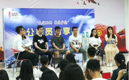 5月18日晚,由五邑大學經濟管理學院學生發(fā)展中心主辦的主題為“走近職場、綻放夢想”之公務員經驗分享會在活動中心一樓舞廳順利舉辦。本次分享會邀請了6位已通過國考的2018屆畢業(yè)生劉育、陳文凱、陸俊霖、黎雪雯、李穎媛、施聰慧來為廣大五邑學子分享考取公務員的寶貴經驗。