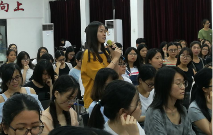 此次分享會主要采取訪談的形式開展,各嘉賓通過與主持人一問一答的互動分享他們寶貴的備考經驗和心得體會。劉育重點介紹了考試的筆試備考技巧,他建議要前期積累、掌握基礎習題、注重歸納概括、答題要有條理性和邏輯性;黎雪雯重點介紹了面試技巧,她提出了要開口多練、回答要簡潔有條理等建議;陳文凱表示復習過程中要勞逸結合,根據(jù)自己的狀態(tài),制定復習時間,做好自己;陸俊霖就學生好奇本科在校成績對考公的影響,向同學們介紹考公對本科學生的成績要求,建議在座各生努力學習,珍惜在校的學習時光和鍛煉機會;李穎媛認為心態(tài)很重要,提出可通過參加招聘會找一份工作作為“保障”再全身心投入考公的備考以減少心理壓力;施聰慧則向大家分享本人在備考路上的心路歷程,鼓勵大家自信、自律、自強。最后分享會的第二部分是現(xiàn)場觀眾的提問環(huán)節(jié)。現(xiàn)場的觀眾積極地向師兄師姐提問,師兄師姐也耐心解答。