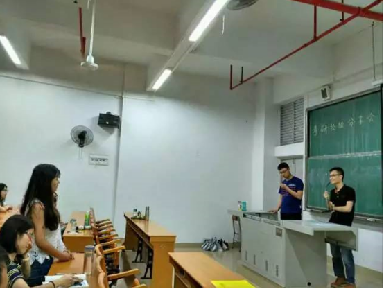 會上,兩位師兄分別從數學、英語、政治及專業課四個研究生考試科目分享復習經驗。從復習時間的安排、各科目的復習重點到他們自身的復習技巧、總結出來的優秀學習資源,兩位師兄毫無保留地向大家分享了他們的學習心得。此外,兩位師兄也分享了他們考研時期的一些生活習慣和心態,強調在準備考研的過程中除了有效率的學習方法,保持良好的心態也是非常重要的,要堅定考研信念、樹立信心。在最后的提問環節中,不少同學向兩位師兄請教關于考試信息、生活作息、如何解決專業課程與復習的沖突的問題,師兄們結合自身經驗,一一解答,解決了同學們的困擾。