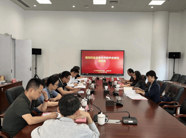 4月10日下午,江門市科學技術協會主席靈君、副主席何迪川、學會部部長梁雄堅一行來校交流。副校長、校科協主席陳文華,科技處處長、校科協副主席、秘書長劉長宇,科技處副處長吳志鋒、江門市紡織工程學會理事長于暉、江門市計算機學會理事長曾軍英、江門市土木建筑學會副理事長王連坤、江門市機械工程學會理事長單位代表李辛沫等參加本次活動。