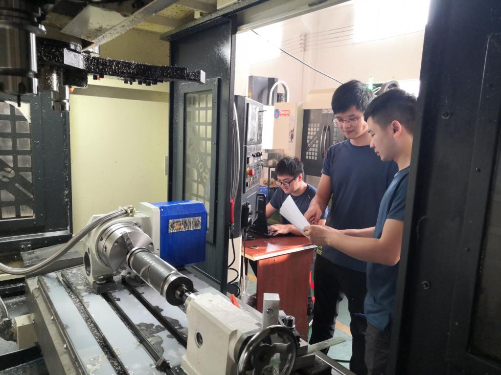 鄺幸勝團(tuán)隊(duì)在四軸加工中心研討加工工藝