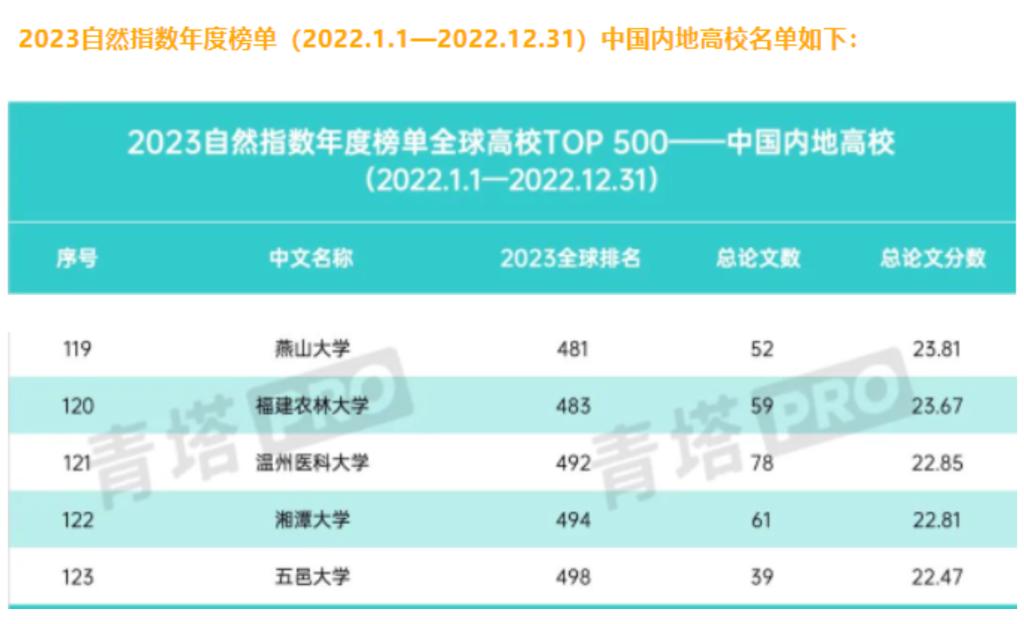 6月15日,2023自然指數年度榜單(Nature Index 2023 Annual Tables)發布2023自然指數年度榜單全球學術機構TOP500,五邑大學以全球學術機構排498位,中國內地高校第123位,廣東省第10位入圍該榜單。此次自然指數榜單是基于2022年1月1日至12月31日的統計數據,展示了不同國家和科研機構在物理、化學、生物學、地球和環境科學四大自然科學領域高水平科研產出的情況,入圍該榜單,體現了學校在高水平理工科大學的建設取得顯著成效,同時也反映了學校科研綜合實力和國際影響力進一步提升。