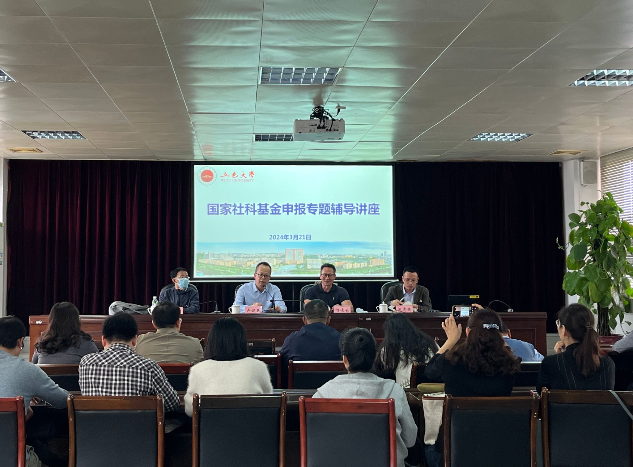 為做好2024年度國家社科基金申報工作,3月21日下午,科技處在南主樓七樓大會議室舉辦了國家社科基金申報專題輔導講座,邀請暨南大學新聞與傳播學院副院長曾一果教授和經濟學院副院長何凌云教授作國家社科基金申報經驗分享報告。講座由科技處副處長吳志鋒主持,暨南大學駐五邑大學幫扶工作隊隊長盧健民、人文社科學院(部)科研副院長、專任教師等30余人參加。