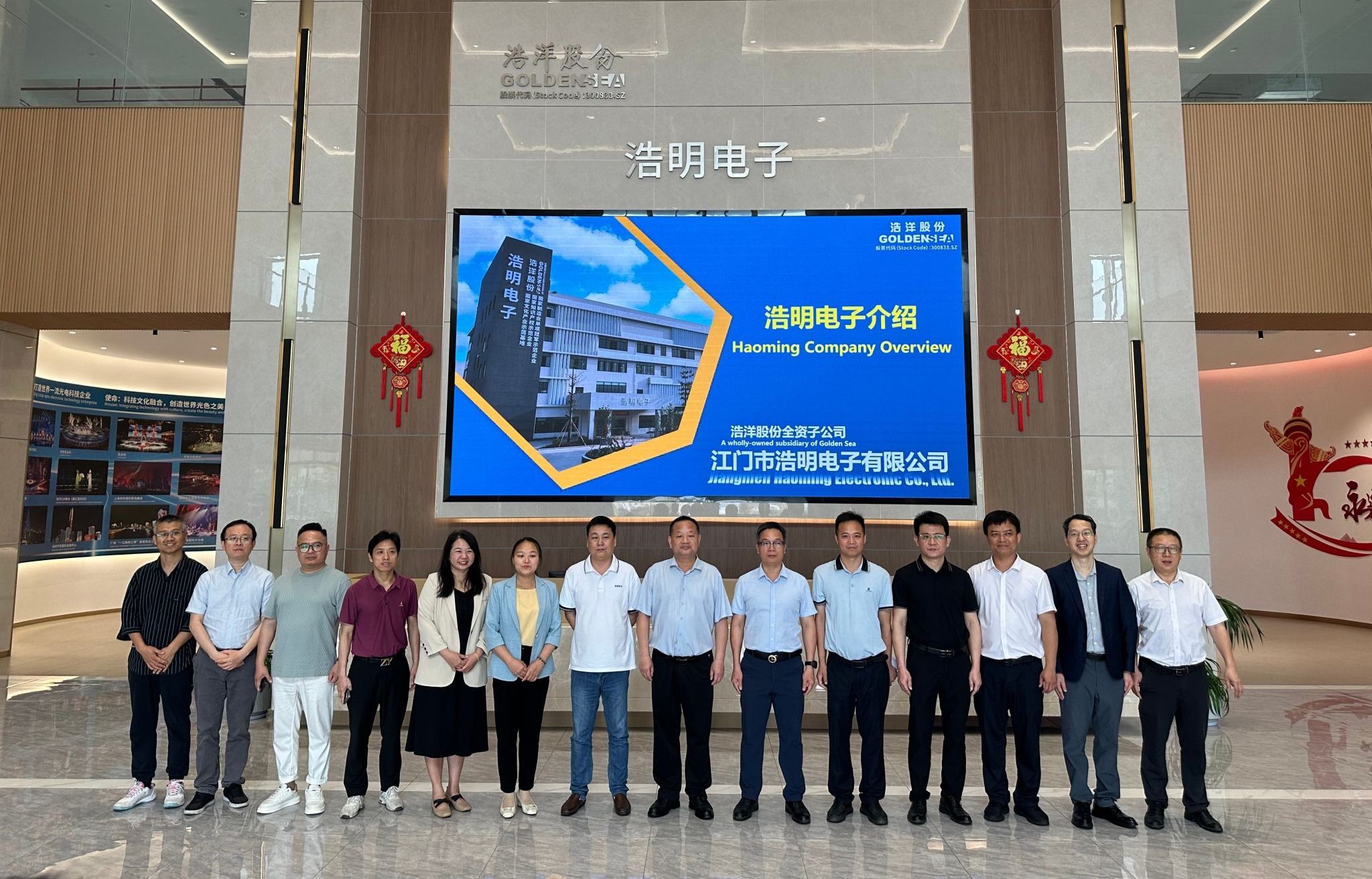 董超俊一行先后走訪博泰智能裝備(廣東)有限公司、江門市浩明電子有限公司及廣東恩州航空科技有限公司,實地考察智能裝備及演藝裝備生產工藝,全面了解技術創新布局,并圍繞產學研協同合作機制完善、畢業生崗位需求對接等關鍵議題展開研討,為深化校地企合作、精準服務產業升級拓寬路徑。