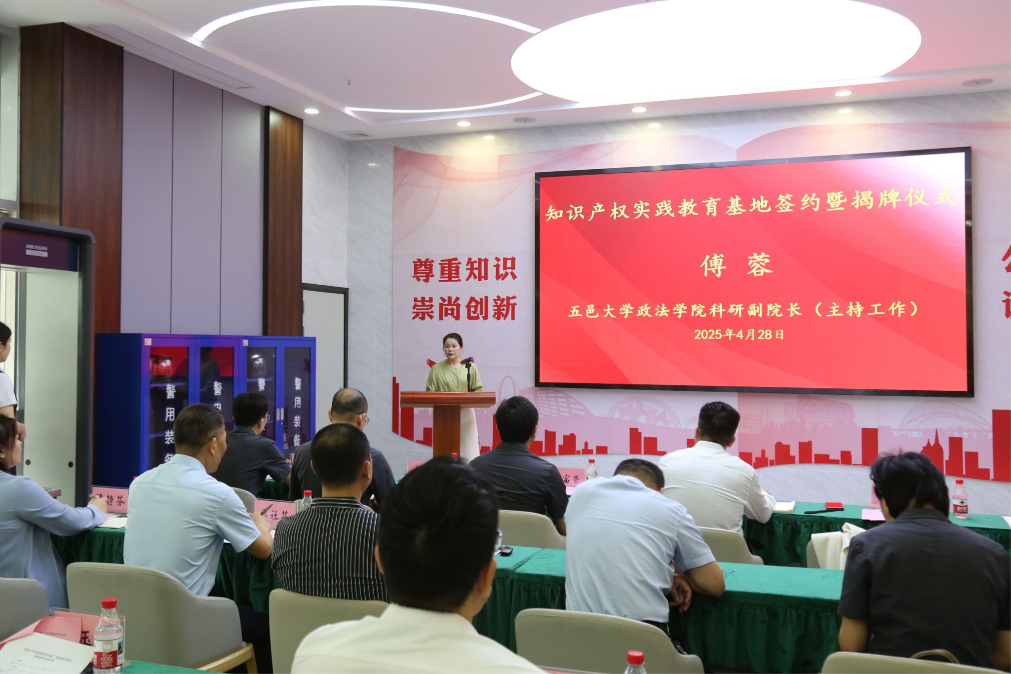為扎實(shí)推動(dòng)“雙百行動(dòng)”工作落地見(jiàn)效,2025年4月28日,五邑大學(xué)政法學(xué)院與江門(mén)市江海區(qū)人民法院“知識(shí)產(chǎn)權(quán)實(shí)踐教育基地”簽約暨揭牌儀式在廣州知識(shí)產(chǎn)權(quán)法院江門(mén)巡回審判法庭舉行。五邑大學(xué)政法學(xué)院黨委書(shū)記費(fèi)明勝、科研副院長(zhǎng)傅蓉、教學(xué)副院長(zhǎng)徐丹丹,江海區(qū)人民法院黨組書(shū)記、院長(zhǎng)曹富榮,黨組成員、副院長(zhǎng)趙煒等領(lǐng)導(dǎo)及雙方代表20余人出席儀式,江海區(qū)市場(chǎng)監(jiān)管局、江門(mén)律協(xié)代表受邀見(jiàn)證,儀式由知識(shí)產(chǎn)權(quán)法官孟宗主持。