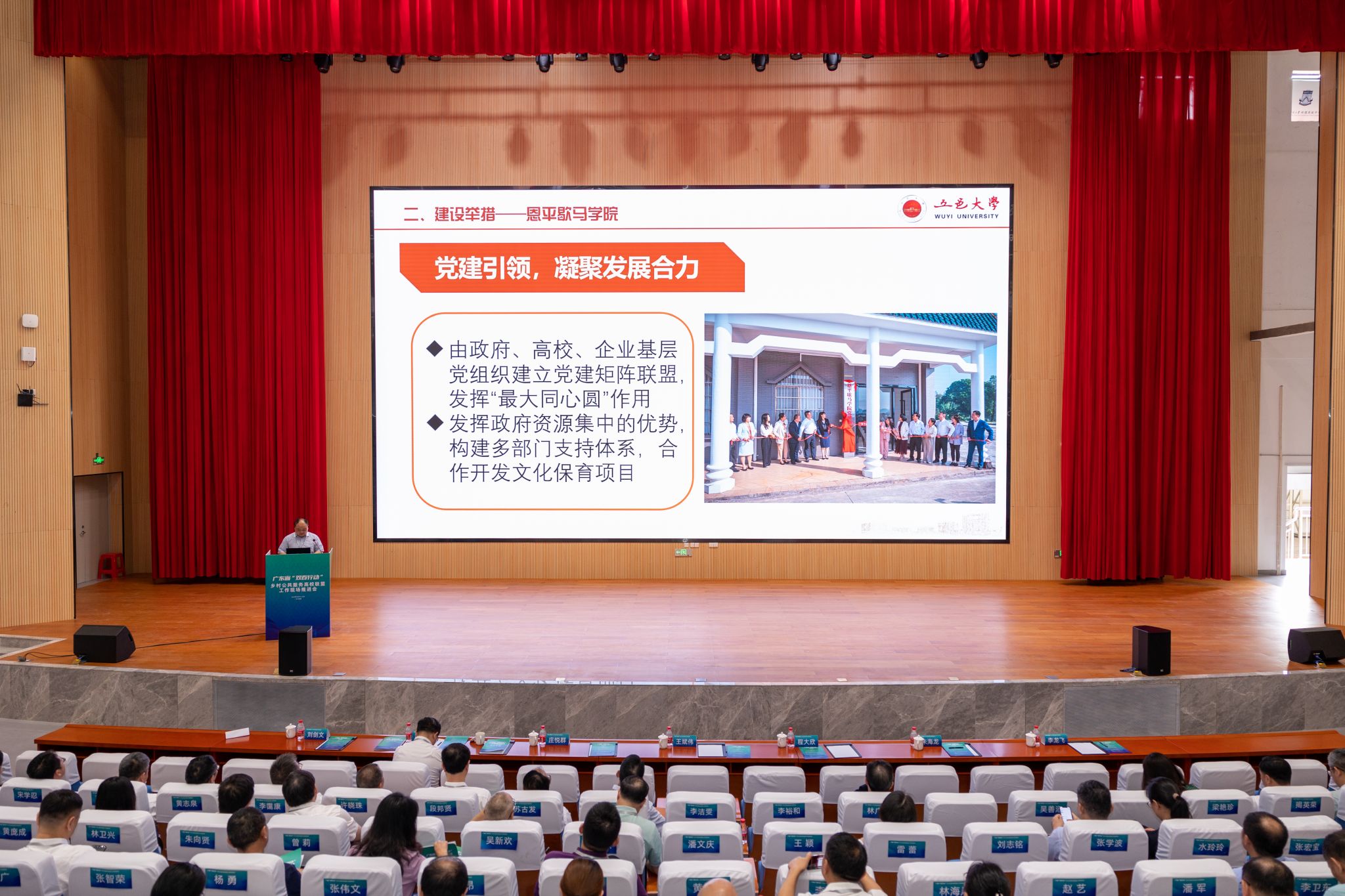 會上,經濟管理學院伍鋒副教授代表學校以“恩平歇馬學院:擦亮僑鄉文化品牌”為題作了典型案例交流發言,介紹學校高度重視、高位推進“雙百行動”工作落實情況,大力支持恩平歇馬學院建設,推動地方優秀文化保護與開發情況。歇馬學院積極探索“一個聯盟,兩個主體,三個目標,四個措施”的工作模式,首先,通過開展“校長大講堂”“歇馬論壇”等列活動,形成了逐漸緊密的政產學研企共商共建機制。其次,組織師生團隊以科創項目為載體創新激活鄉土資源,設計出歇馬系列IP以及研學課程,吸引7000多名中小學生及境內外游客、200多臺次來自全國各地的房車車友走進歇馬村,逐漸活化恩平鄉土優秀文化。最后,聯動校、政、企、村啟動歇馬江畔集市等一批新業態,為歇馬村創造了一批就業崗位,部分村民收入已有明顯提高;助推歇馬村成功入選廣東鄉村研學目的地TOP10,讓傳統古村落重新煥發新光彩。