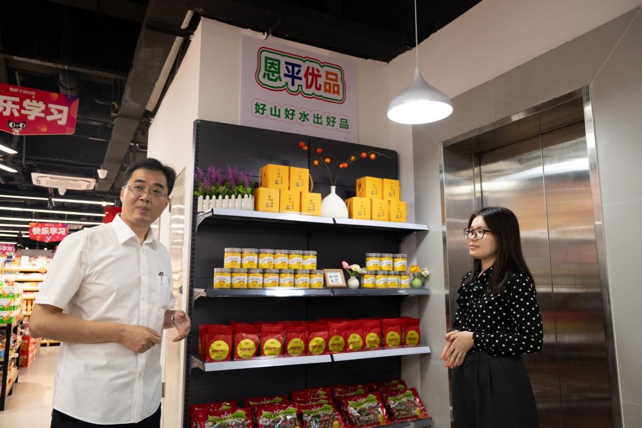 五邑大學“雙百行動”駐恩平服務隊副隊長蘇安銳表示,將“恩平優品”引入校內實訓基地是五邑大學推進“雙百行動”的重要內容,也為課程思政教學提供了優質素材資源。這一舉措不僅有助于“恩平優品”的推廣,還豐富了實訓基地的內涵。他希望同學們能夠潛心研學,為“百千萬工程”和“雙百行動”貢獻青春力量。