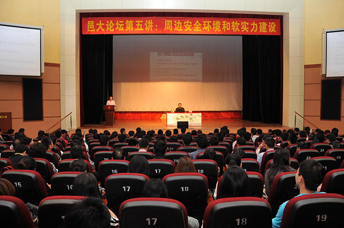 羅援少將從一個中國軍人和國家安全戰(zhàn)略學者的視角為在座師生深入分析了當前我國周邊安全環(huán)境面臨的復雜形勢,對釣魚島、東海的歷史和現狀做了全面深入地分析,并提出了解決爭端的觀點,即在“主權歸我”的原則上,要在爭端區(qū)域強調行政存在、法律存在、軍事存在、執(zhí)法存在、經濟存在與輿論存在。