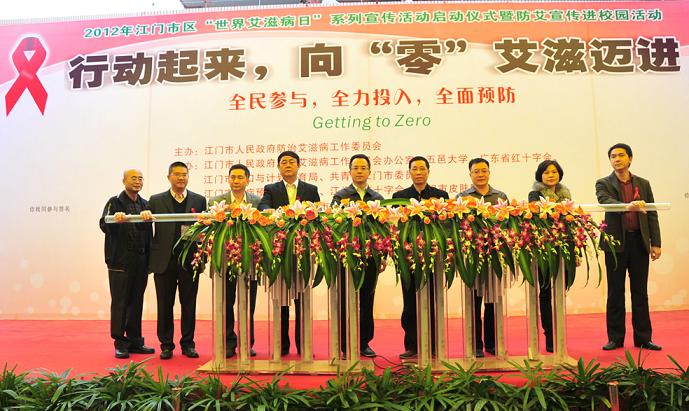 12月1日是第25個(gè)“世界艾滋病”日,江門市防艾委在我校學(xué)生活動中心舉辦江門市區(qū)“世界艾滋病日”系列宣傳活動啟動儀式暨防艾宣傳進(jìn)校園活動,副市長陳佳林出席活動。校黨委副書記康紹華、宣傳部部長戴永潔部長、團(tuán)委書記徐煥立及100多名學(xué)生參加了此項(xiàng)活動。