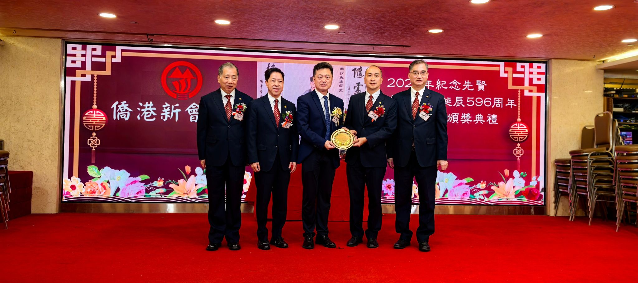 欒天罡應(yīng)邀出席僑港新會商會紀念先賢陳白沙先生誕辰 596 周年暨屬校師生頒獎典禮并致辭。同時,欒天罡代表學(xué)校致送紀念品,感謝僑港新會商會一直以來對學(xué)校教育事業(yè)發(fā)展的支持,在學(xué)校即將迎來40周年校慶之際,希望商會繼續(xù)關(guān)注支持五邑大學(xué)發(fā)展。